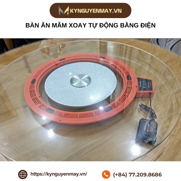 Bàn ăn mâm xoay tự động bằng điện mang đến sự tiện nghi và hiện đại cho không gian ăn uống, giúp việc dùng bữa trở nên thoải mái và sang trọng hơn. Với cơ chế xoay linh hoạt, vận hành êm ái và thiết kế thẩm mỹ cao, sản phẩm là lựa chọn lý tưởng cho nhà hàng, khách sạn và gia đình cao cấp. Để sở hữu bàn ăn mâm xoay tự động bằng điện chất lượng, hãy liên hệ Kỷ Nguyên Máy qua hotline: 077.209.8686 để được tư vấn chi tiết và báo giá tốt nhất!