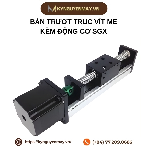 Bàn trượt trục vít me kèm động cơ SGX còn nổi bật với độ cứng vững cao, khả năng chịu tải tốt và tuổi thọ lâu dài, giúp hạn chế rung lắc và sai số khi vận hành liên tục. Điều này góp phần nâng cao chất lượng sản phẩm và tối ưu hiệu suất sản xuất. Để lựa chọn cấu hình phù hợp, hãy liên hệ Kỷ Nguyên Máy qua hotline: 077.209.8686.