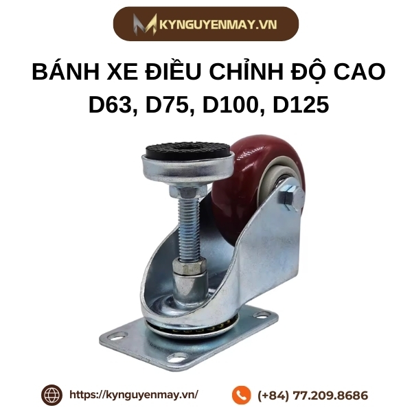 Với thiết kế linh hoạt, chịu tải ổn định và khả năng cân bằng chính xác, bánh xe điều chỉnh độ cao D63, D75, D100, D125 là lựa chọn phù hợp cho bàn máy, tủ thiết bị và dây chuyền sản xuất cần vừa di chuyển vừa cố định chắc chắn. Nếu bạn cần tư vấn chọn đúng tải trọng, kích thước lắp đặt hoặc báo giá nhanh, hãy liên hệ Kỷ Nguyên Máy qua hotline 077. 209. 8686 để được hỗ trợ kỹ thuật chi tiết và giải pháp phù hợp với thiết bị của bạn.