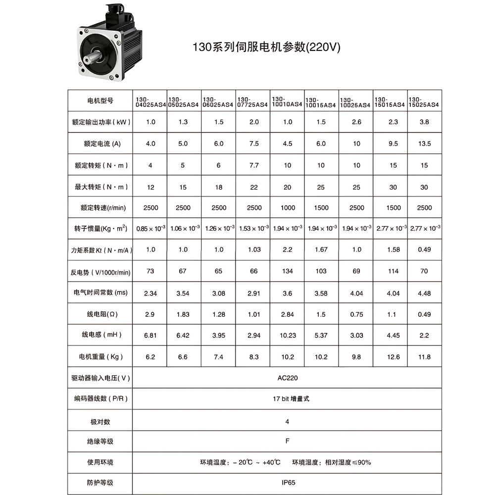 Bộ động cơ servo có phanh 1000W 1300W 1500W 2300W 2600W 3800W size 130 đáp ứng đa dạng nhu cầu sử dụng trong nhiều hệ thống máy móc. Để hiểu rõ hơn về đặc điểm và khả năng làm việc, hãy cùng tham khảo thông số kỹ thuật chi tiết của bộ động cơ servo dưới đây.