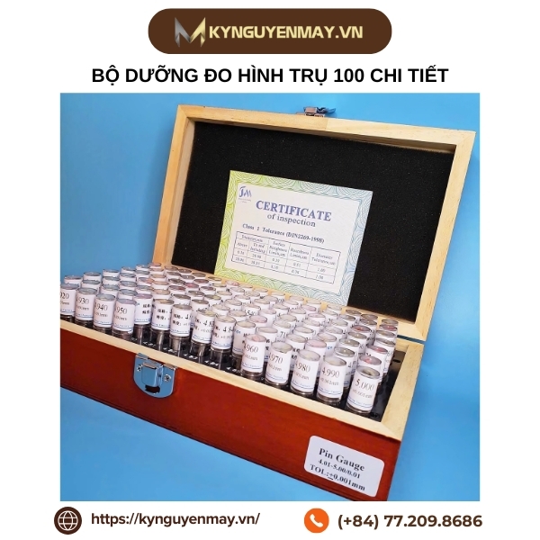 Bộ dưỡng pin đo lỗ 100 chi tiết là công cụ hỗ trợ đắc lực, giúp việc kiểm tra kích thước lỗ trở nên nhanh chóng và chính xác hơn. Với chất lượng ổn định, dễ sử dụng và độ bền cao, đây là lựa chọn lý tưởng cho các xưởng cơ khí. Để mua sản phẩm chính hãng, hãy liên hệ Kỷ Nguyên Máy qua hotline: 077.209.8686.