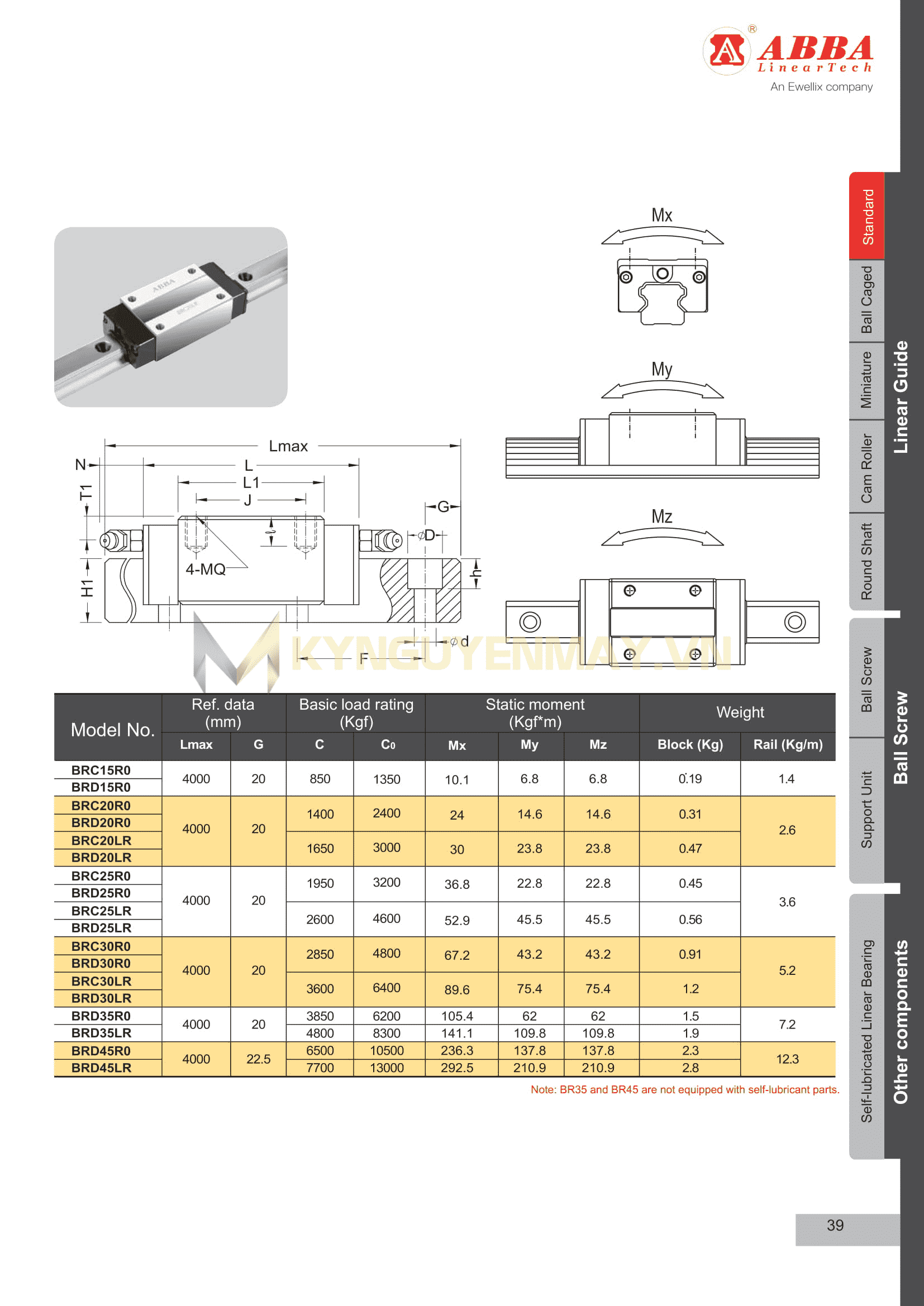Con trượt ABBA BRC-R0/LR là một trong các dòng con trượt dẫn hướng dùng trong các loại máy móc, thiết bị cơ khí, công nghiệp của nhà sản xuất uy tín của Đài Loan ABBA.
