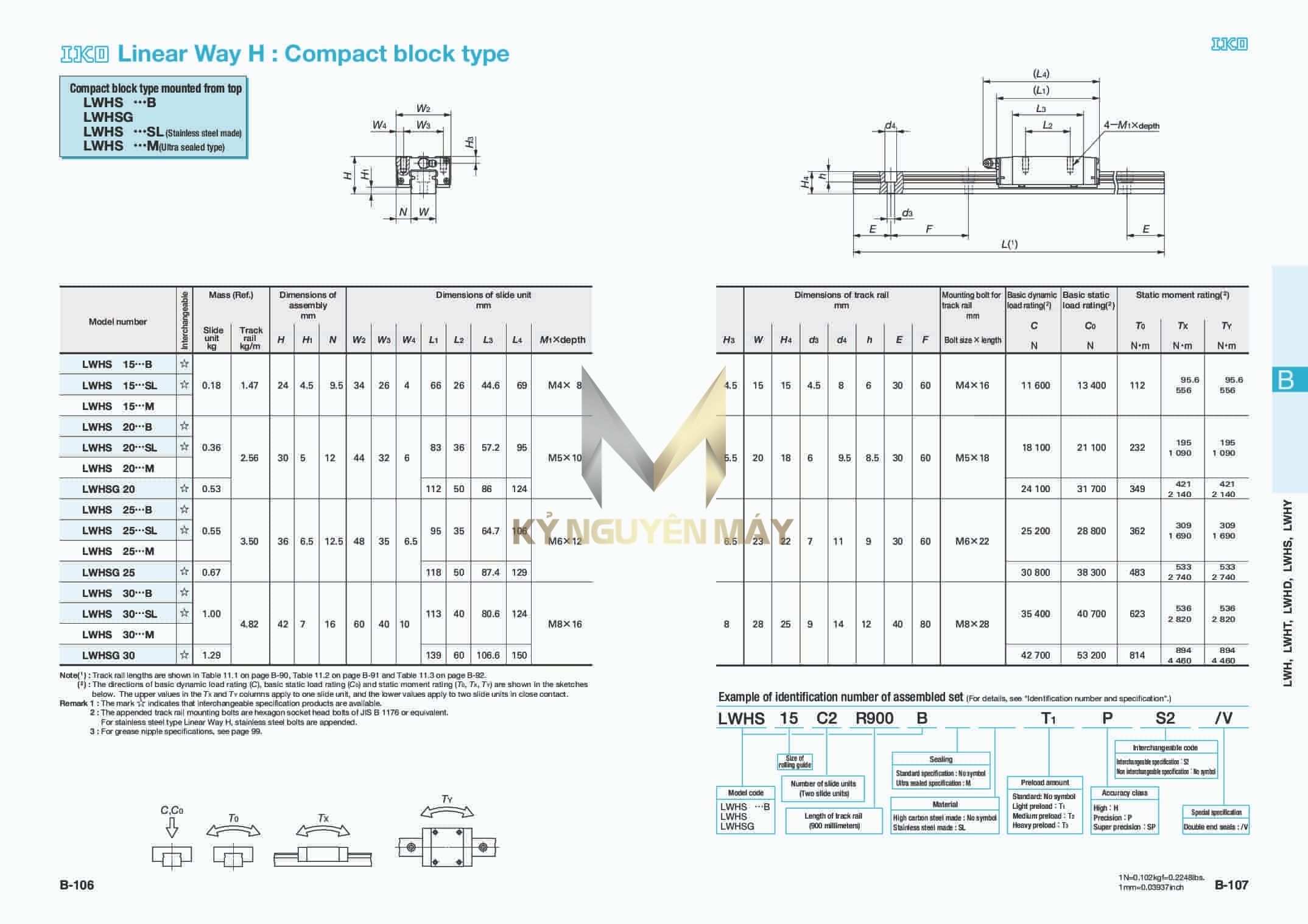 Thông số kỹ thuật Con trượt IKO LWHS15B, LWHS15SL, LWHS15M, LWHS20B, LWHS20SL, LWHS20M, LWHSG20
