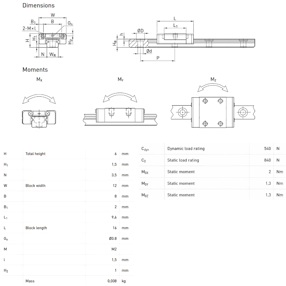 Ảnh thông số kỹ thuật block HIWIN MGN5C