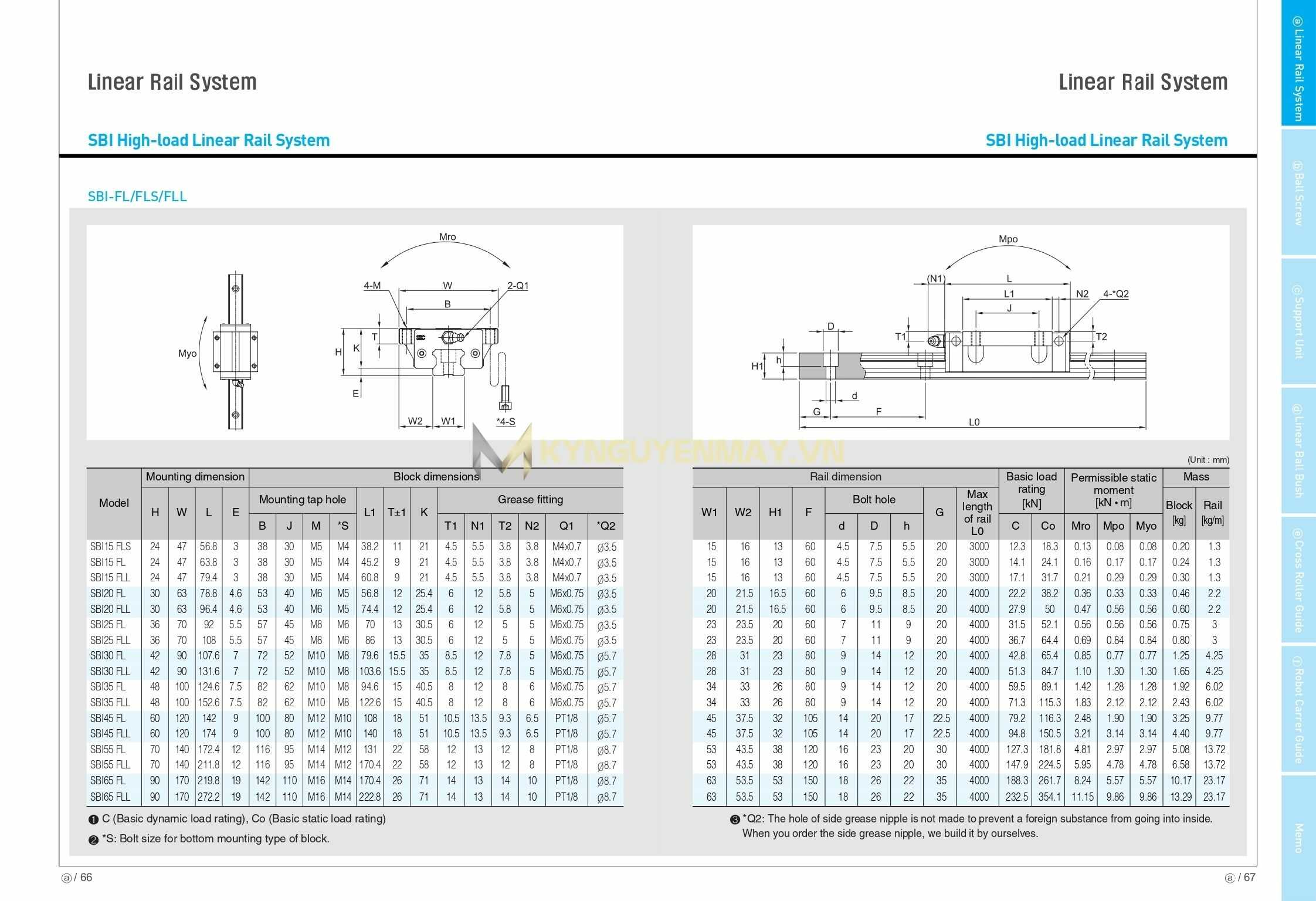 Con trượt SBC SBI15FLL, Con trượt SBC SBI20FLL, Con trượt SBC SBI25FLL, Con trượt SBC SBI30FLL, Con trượt SBC SBI35FLL, Con trượt SBC SBI45FLL, Con trượt SBC SBI55FLL, Con trượt SBC SBI65FLL