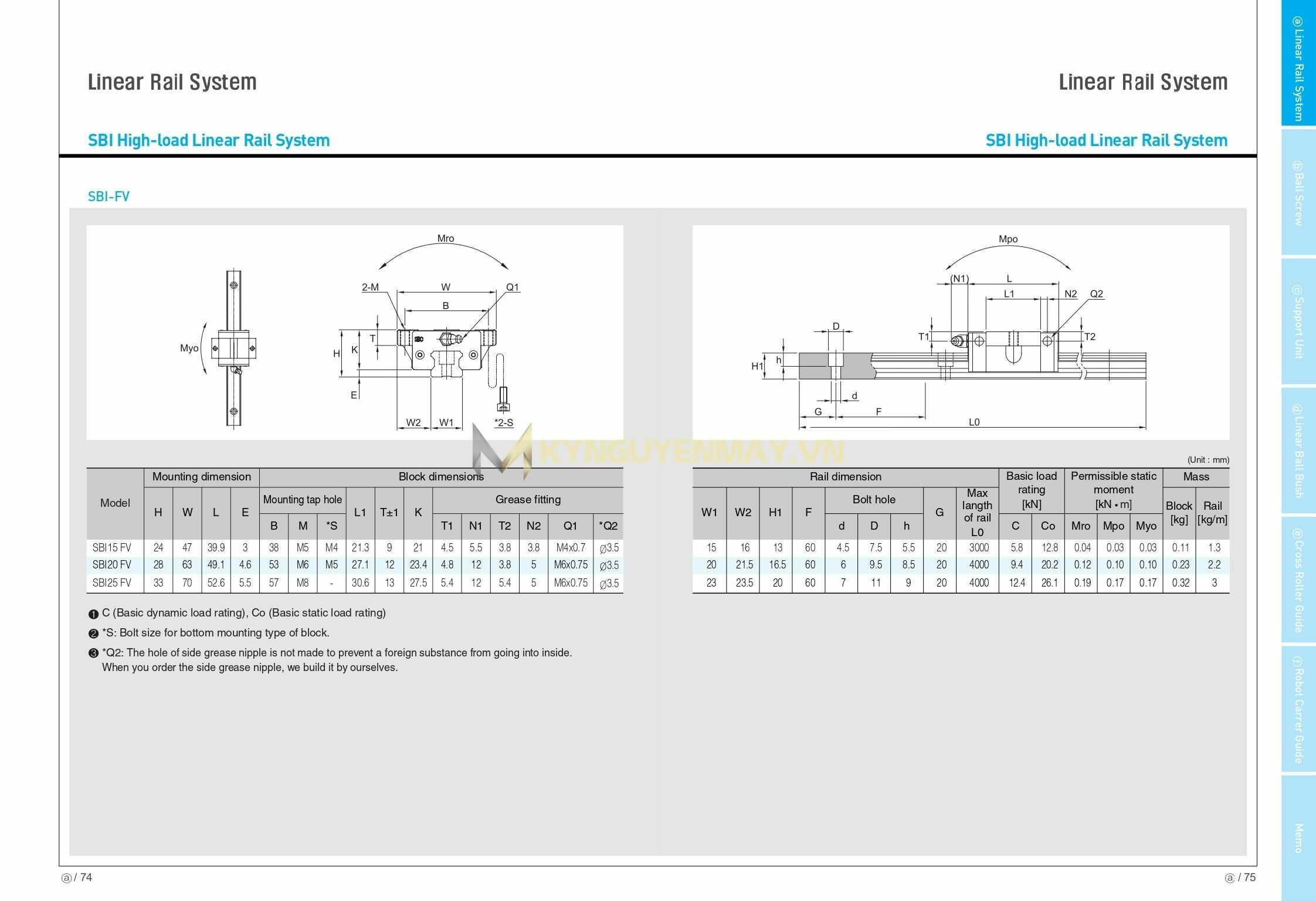 Mã con trượt SBC SBI FV: SBI15FV, SBI20FV, SBI25FV
