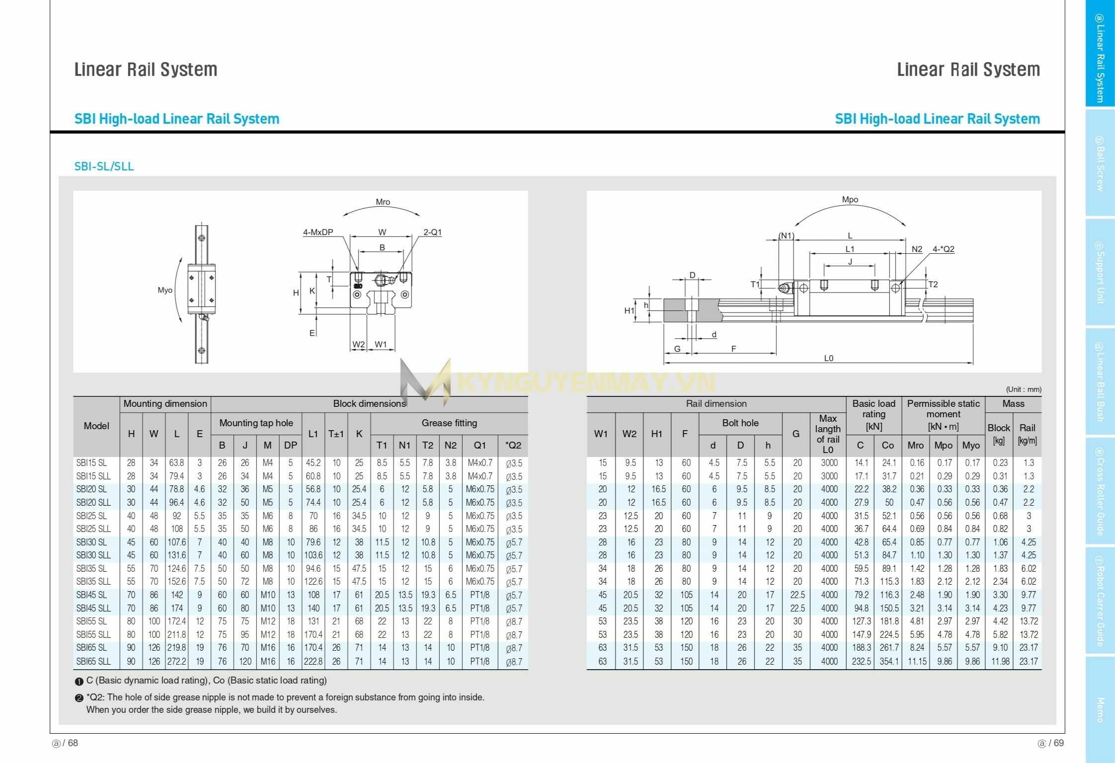 Con trượt SBC SBI15SLL, Con trượt SBC SBI20SLL, Con trượt SBC SBI25SLL, Con trượt SBC SBI30SLL, Con trượt SBC SBI35SLL, Con trượt SBC SBI45SLL, Con trượt SBC SBI55SLL, Con trượt SBC SBI65SLL