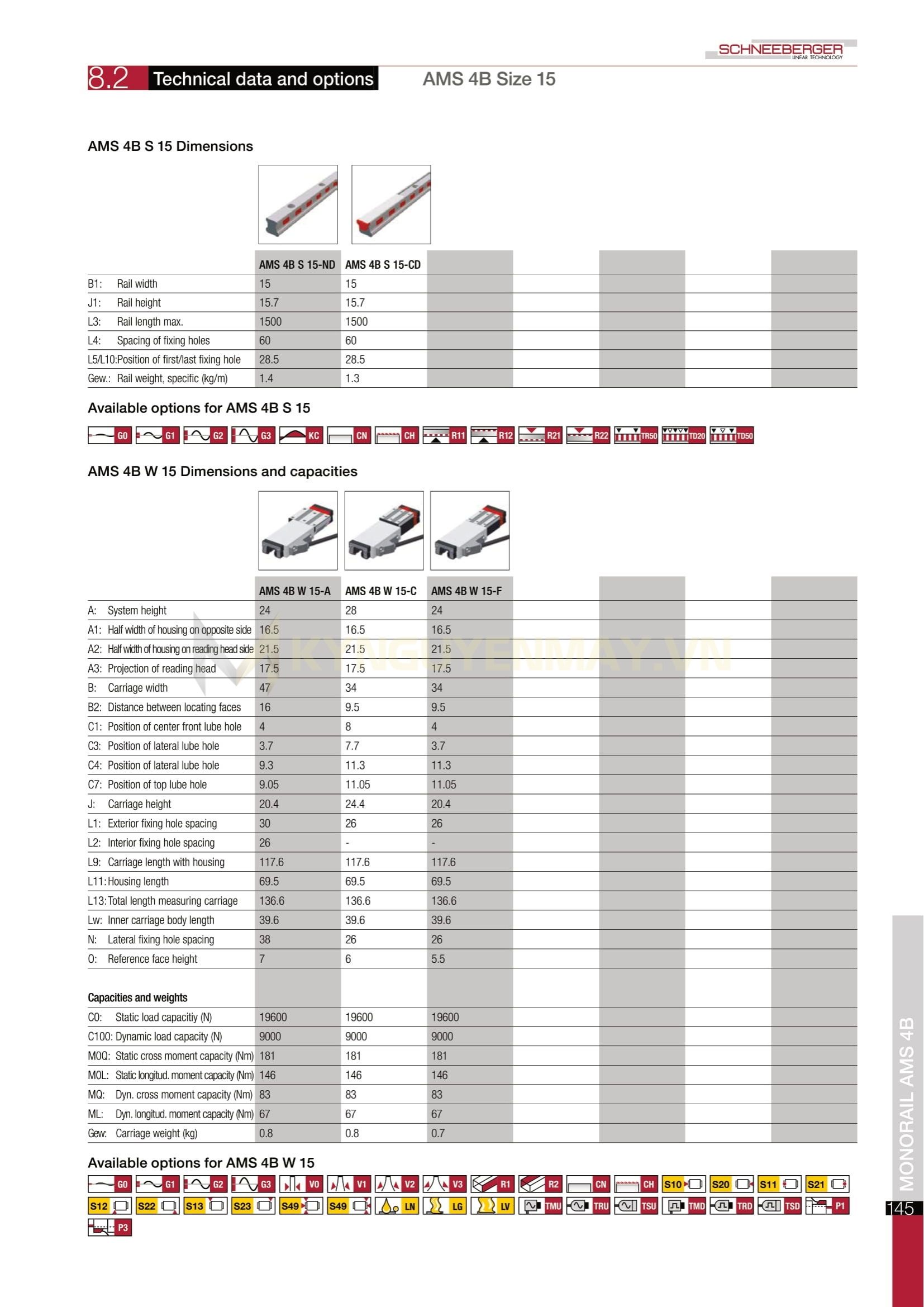 Mã sản phẩm Con trượt SCHNEEBERGER AMS 4B W 15: AMS 4B W 15-A, AMS 4B W 15-C, AMS 4B W 15-F