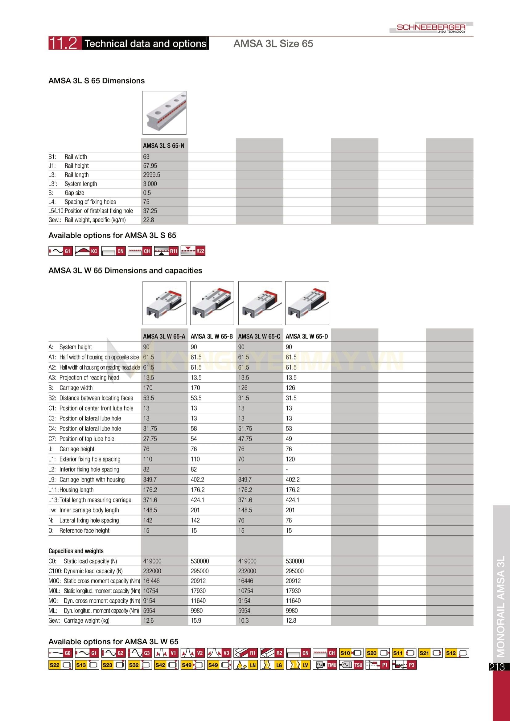 Mã sản phẩm Con trượt SCHNEEBERGER AMSA 3L W 65: AMSA3LW65A, AMSA3LW65B, AMSA3LW65C, AMSA3LW65D
