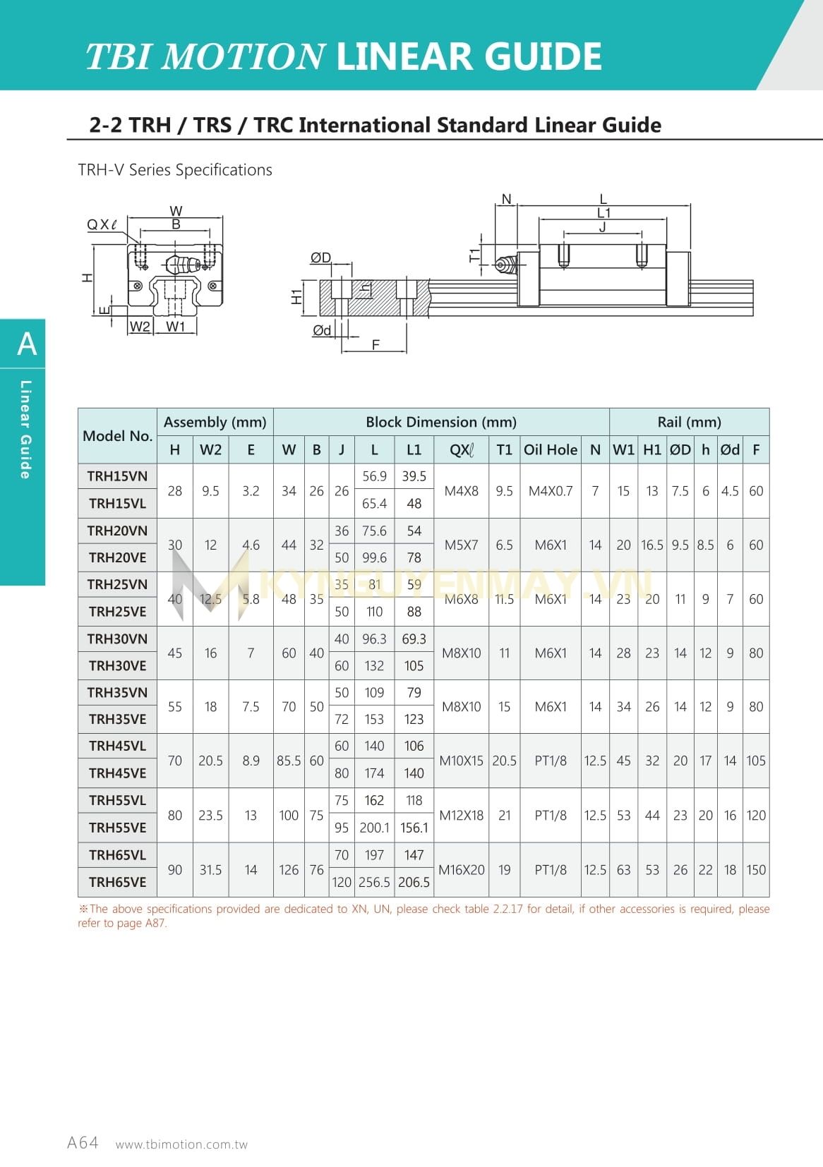 Con trượt TBI TRH VE là dòng con trượt của hãng TBI. Các sản phẩm con trượt TBI đều được sản xuất trên dây chuyền hiện đại với đội ngũ thiết kế dày dặn kinh nghiệm, tạo nên sự trải nghiệm ấn tượng với những ưu điểm bật như tuổi thọ lâu bề, tịnh tiến đa phương hướng (lên-xuống, trái-phải), độ chịu tải lớn, độ chính xác cao...Sản phẩm của hãng TBI được đánh giá cao về chất lượng và ứng dụng rộng rãi trong các máy móc, thiết bị máy móc.