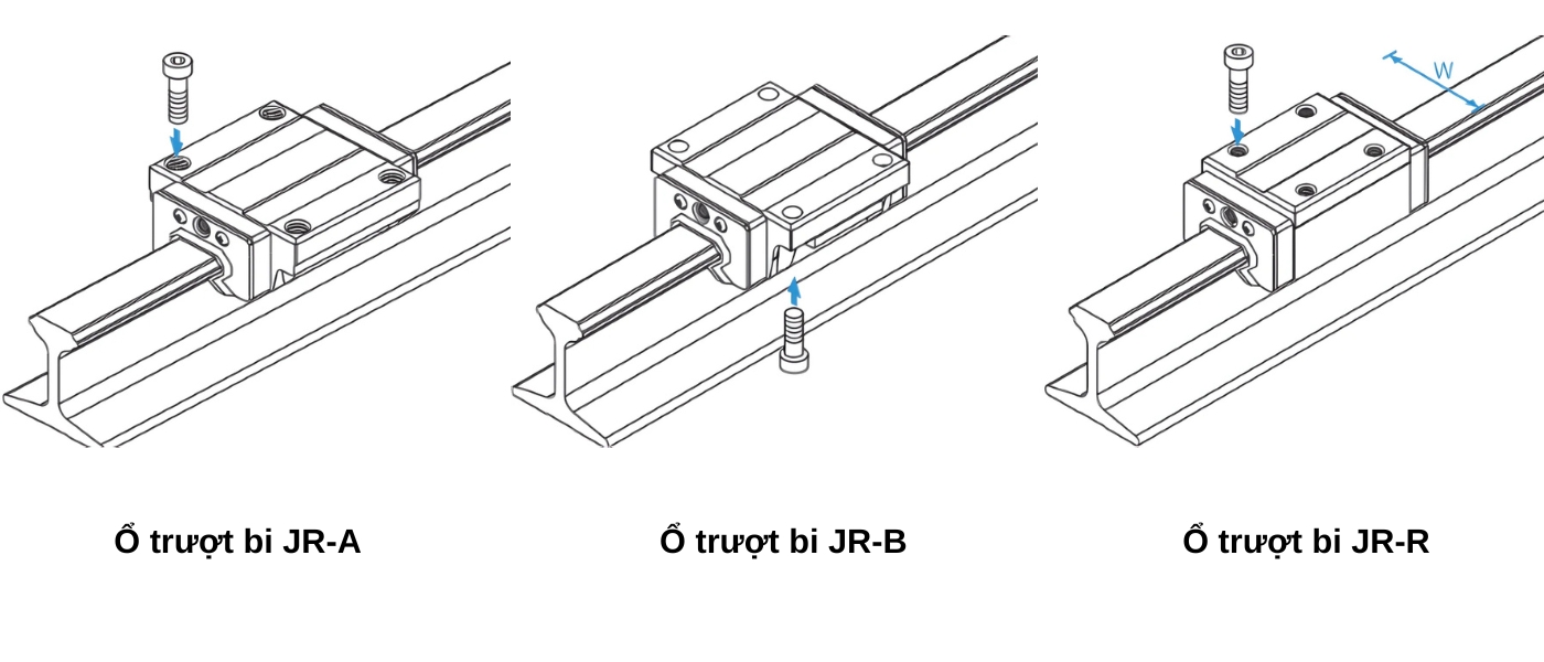 Con trượt THK JR-A/B/R là dòng dẫn hướng LM tích hợp, được thiết kế với độ chính xác cao nhờ bốn hàng bi lăn di chuyển trong các rãnh trên ray LM và khối LM. Hệ thống này được trang bị các tấm bịt giúp bi tuần hoàn trơn tru, đồng thời tấm giữ bi đảm bảo bi không rơi ra ngay cả khi ray LM bị kéo ra. Điểm nổi bật của dòng con trượt THK là sử dụng khối LM đã được kiểm chứng về độ bền và độ tin cậy, kết hợp với ray LM có độ cứng chống uốn vượt trội, giúp nó không chỉ hoạt động ổn định mà còn có thể đóng vai trò như một bộ phận kết cấu vững chắc trong hệ thống máy móc.