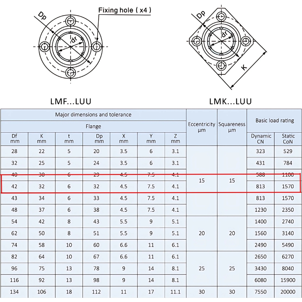Ảnh thông số kỹ thuật bạc trượt LMK12LUU