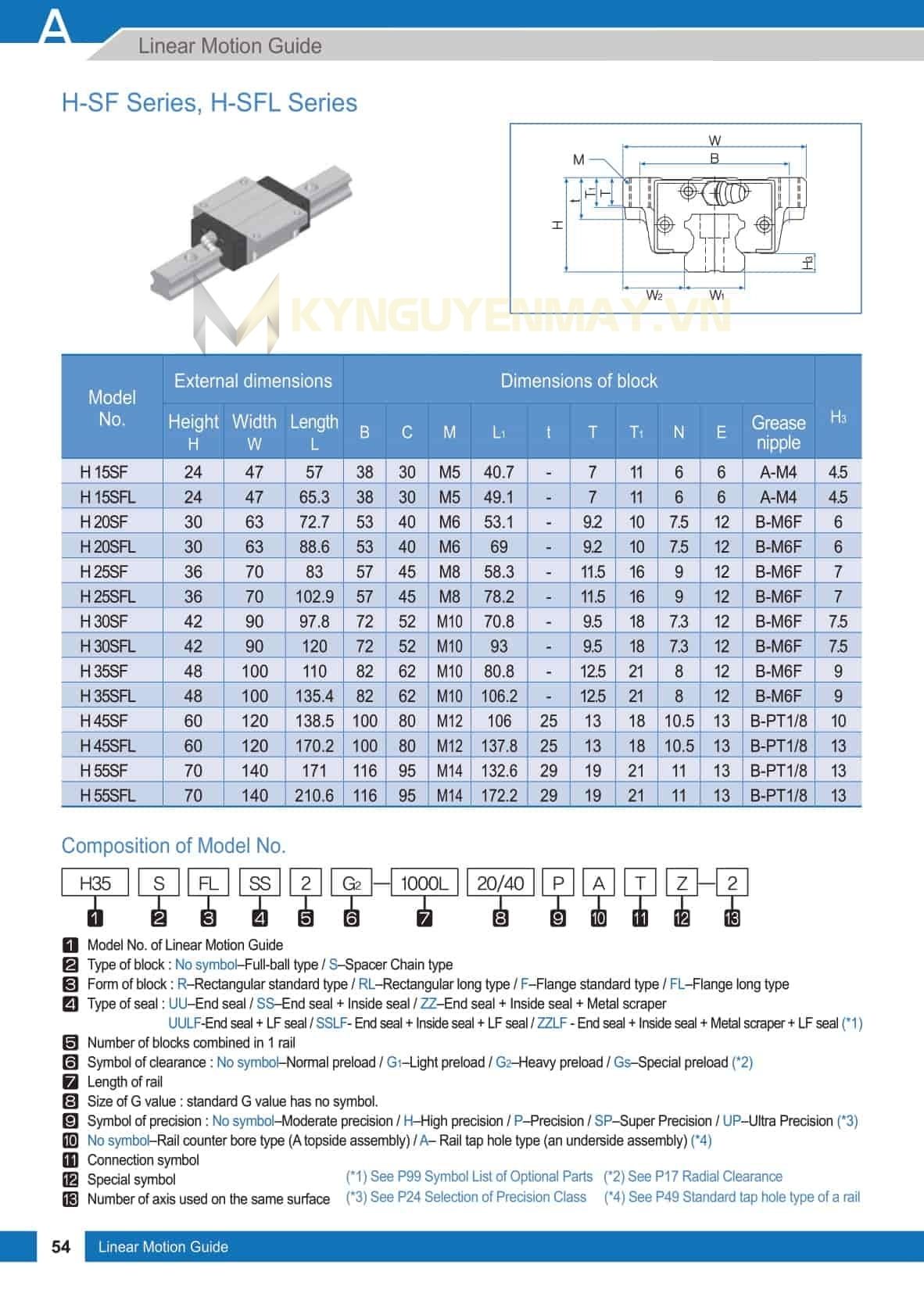 1. Mã sản phẩm: H-SF Series, H-SFL Series