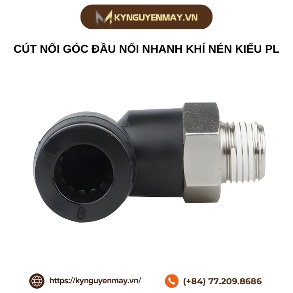 Ảnh cút nối góc đầu nối nhanh khí nén kiểu PL4, PL6, PL8, PL10, PL12