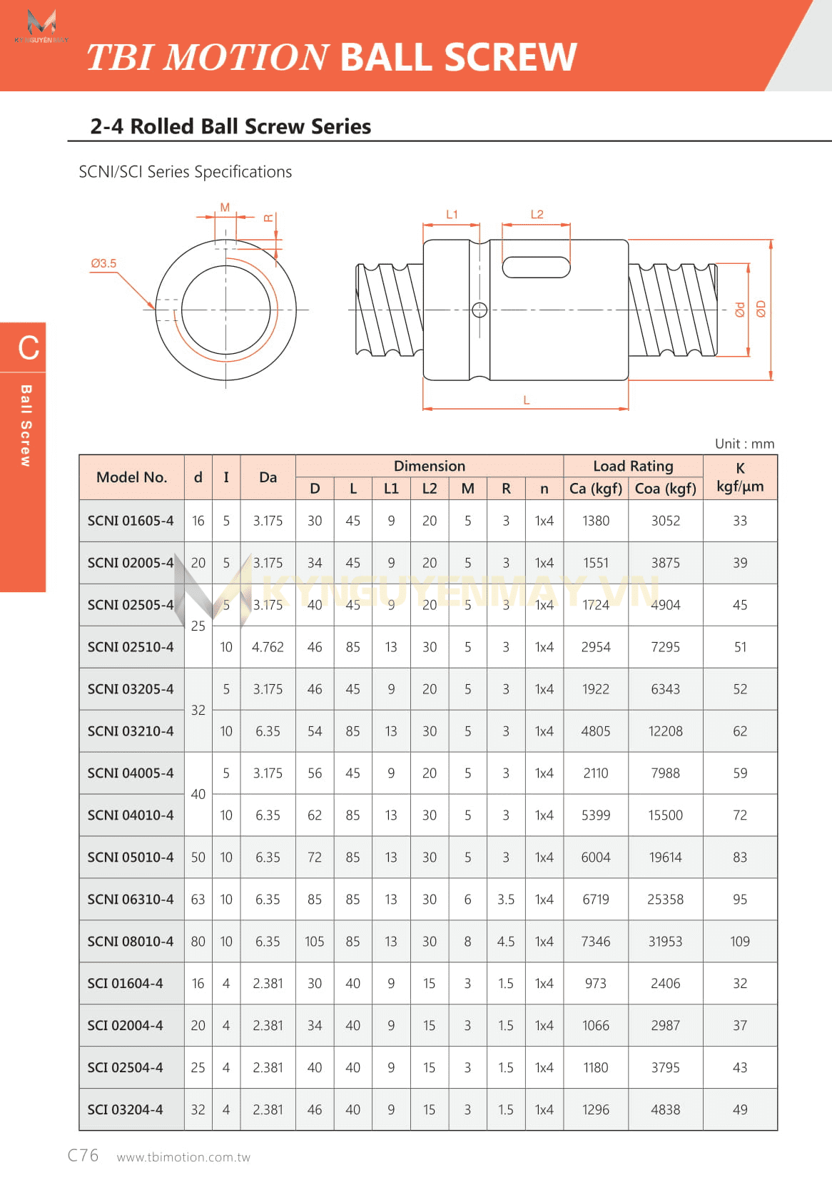Mã Đai ốc Vitme bi TBI SCI tối giản: TBI SCI1604, TBI SCI2004, TBI SCI2504, TBI SCI3204