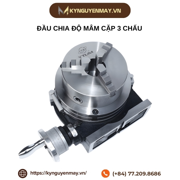 Đầu chia độ mâm cặp 3 chấu là giải pháp hỗ trợ đắc lực trong các quy trình gia công cần độ chính xác cao. Sản phẩm đáp ứng tốt yêu cầu kỹ thuật, đảm bảo độ ổn định và hiệu quả vận hành lâu dài. Quý khách có nhu cầu tìm hiểu thêm hoặc cần tư chi tiết thì liên hệ Kỷ Nguyên Máy qua hotline 077. 209. 8686.