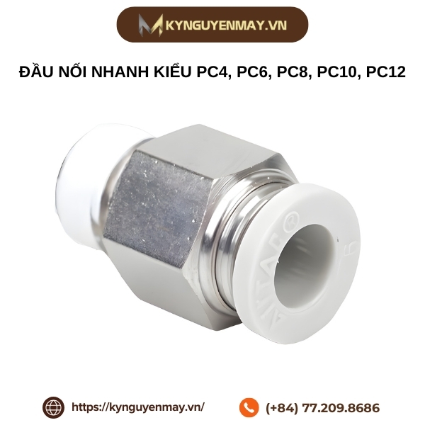 Đầu nối nhanh ren thẳng PC4, PC6, PC8, PC10, PC12 mang lại khả năng kết nối ổn định, bền bỉ và dễ lắp đặt, giúp hệ thống khí nén vận hành hiệu quả và an toàn hơn. Nếu bạn cần tư vấn chi tiết hoặc lựa chọn đúng model phù hợp với thiết bị của mình, hãy liên hệ Kỷ Nguyên Máy qua hotline 077. 209. 8686 để được hỗ trợ nhanh chóng nhé.