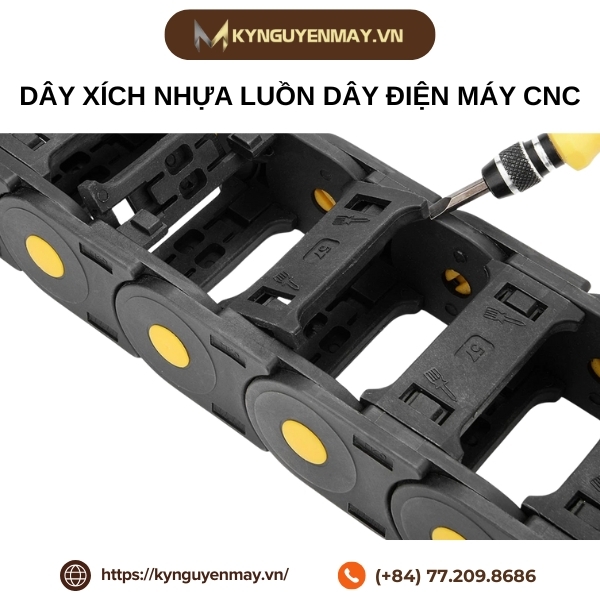 Dây xích nhựa luồn dây điện máy CNC là thiết bị chuyên dụng giúp bảo vệ và dẫn hướng các loại dây cáp, ống khí, ống dầu trong quá trình chuyển động liên tục của máy móc. Với ưu điểm bền nhẹ, linh hoạt và khả năng chịu lực tốt, sản phẩm này không chỉ nâng cao hiệu quả vận hành mà còn giảm thiểu rủi ro hư hỏng hệ thống dây dẫn. Hãy liên hệ đến Kỷ Nguyên Máy thông qua hotline 077.209.8686 để được tư vấn chi tiết.