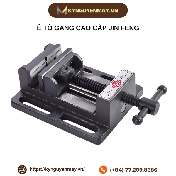 Ê tô gang cao cấp JIN FENG với thiết kế chắc chắn, đế phẳng tinh xảo và hàm tháo rời, mang đến khả năng kẹp chi tiết ổn định, chính xác và bền bỉ trong mọi ứng dụng cơ khí. Sản phẩm giúp nâng cao hiệu quả công việc, giảm rung lắc và tối ưu độ an toàn khi gia công. Để được tư vấn chi tiết, báo giá và hỗ trợ đặt hàng nhanh chóng, quý khách vui lòng liên hệ Kỷ Nguyên Máy qua hotline: 077. 209. 8686.