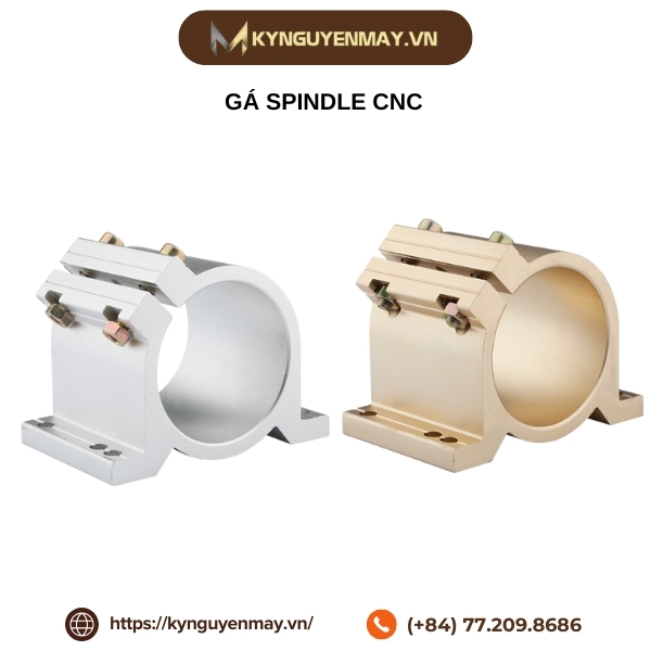 Gá spindle CNC hay còn gọi là gá kẹp spindle, gá đỡ trục spindle máy CNC Router là linh kiện chuyên dùng để cố định trục spindle trên máy CNC, đảm bảo động cơ chính luôn vững chắc, đồng tâm và không bị rung lắc trong quá trình vận hành. Sản phẩm thường được làm từ nhôm đúc nguyên khối, có độ bền cao, chống gỉ sét và chịu lực tốt. Đường kính trong đa dạng như 65mm, 80mm, phù hợp cho các dòng spindle 800W, 1.5kW, 2.2kW, 3kW, 5.5kW. Điểm nổi bật là toàn bộ bề mặt được xử lý phun cát cho vẻ ngoài bóng đẹp, chống trượt, dễ tháo lắp, góp phần nâng cao độ chính xác và tuổi thọ cho hệ truyền động máy CNC. Cuộn xuống dưới để tìm hiểu chi tiết hơn về gá kẹp spindle CNC.