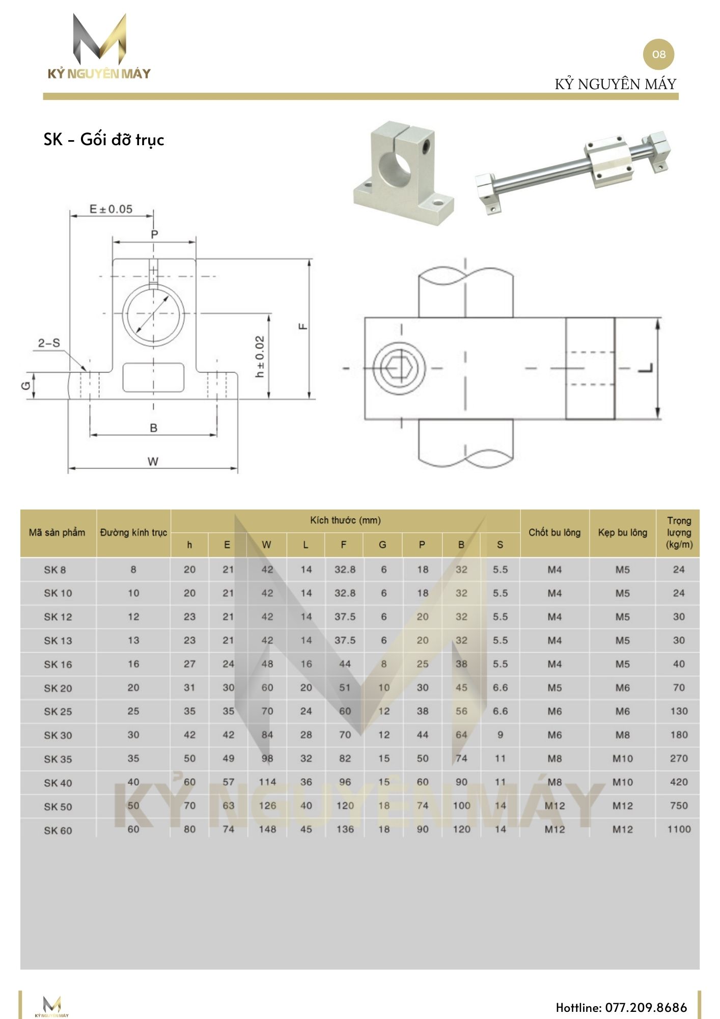 Ảnh Thông số kỹ thuật của gối đỡ SK16, SK20, SK25, SK30, SK35, SK40, SK50, SK60