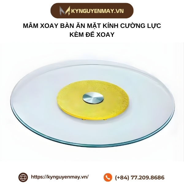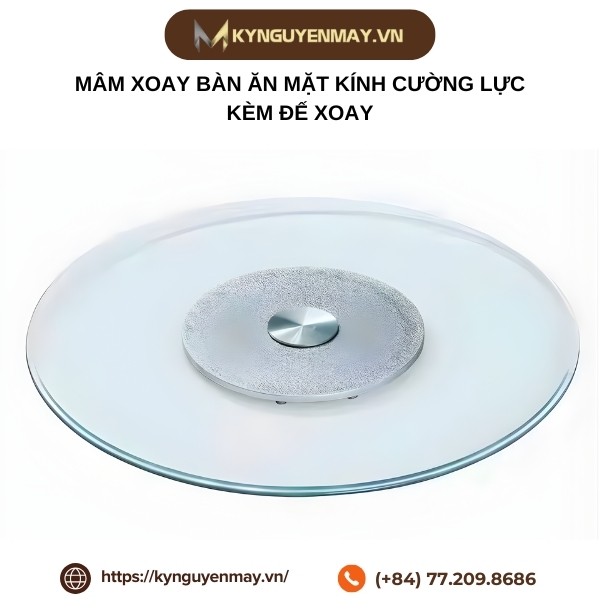 Mâm xoay bàn ăn mặt kính cường lực kèm đế xoay mang đến sự tiện nghi và sang trọng cho không gian bàn ăn hiện đại. Thiết kế mặt kính sáng bóng, dễ vệ sinh cùng đế xoay trơn tru giúp bữa ăn trở nên thoải mái và kết nối hơn giữa các thành viên. Nếu bạn đang tìm sản phẩm mâm xoay bàn ăn chất lượng, bền đẹp và thẩm mỹ cao, hãy liên hệ ngay Kỷ Nguyên Máy qua hotline: 077.209.8686 để được tư vấn và hỗ trợ tận tình.