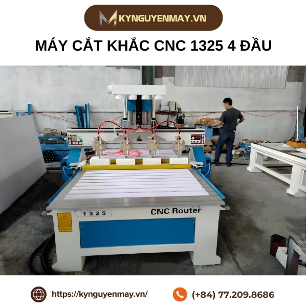 Máy cắt khắc CNC 1325 là giải pháp gia công hiện đại, giúp thực hiện các thao tác cắt, khắc và tạo hình với độ chính xác cao trên nhiều loại vật liệu. Nhờ kết cấu chắc chắn, vận hành ổn định và khả năng làm việc liên tục, máy góp phần nâng cao năng suất và tối ưu hiệu quả sản xuất cho các xưởng cơ khí, quảng cáo và chế biến gỗ. Để được tư vấn chi tiết và báo giá nhanh chóng, vui lòng liên hệ Kỷ Nguyên Máy, hotline: 077.209.8686.