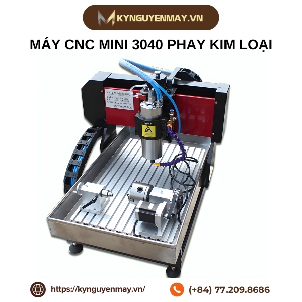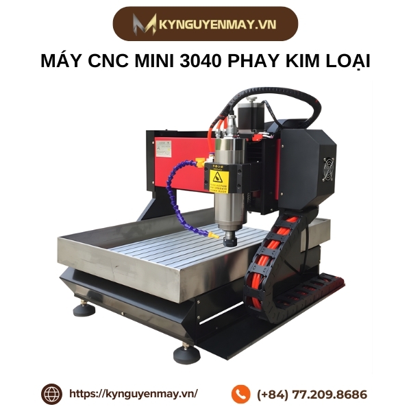 Với kích thước nhỏ gọn nhưng hiệu năng mạnh mẽ, máy CNC mini 3040 phay kim loại mang lại khả năng gia công chính xác trên nhiều vật liệu như nhôm, đồng hay các kim loại mềm khác. Máy hoạt động ổn định, dễ lắp đặt và phù hợp với nhiều nhu cầu sản xuất quy mô nhỏ. Mọi nhu cầu tư vấn kỹ thuật và đặt hàng, vui lòng liên hệ Kỷ Nguyên Máy qua hotline: 077.209.8686 để được hỗ trợ nhanh chóng.