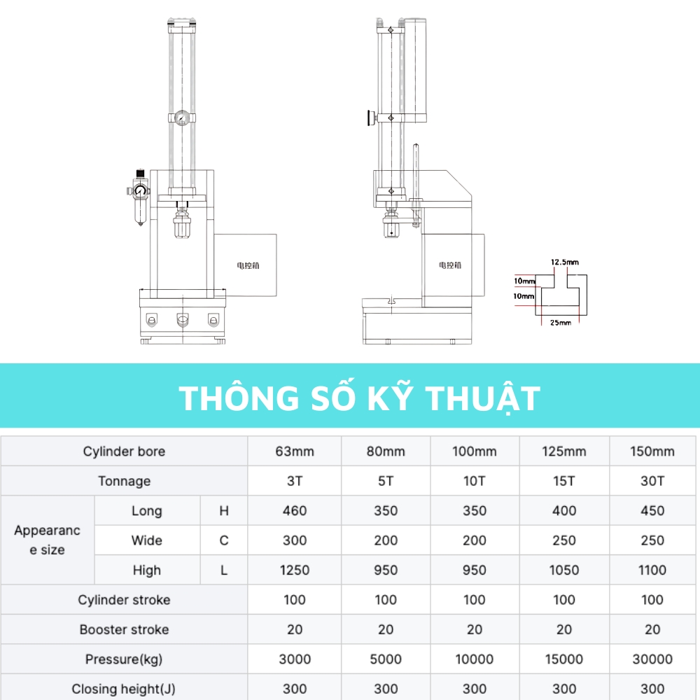 Ảnh thông số kỹ thuật của máy đột dập khí nén kiểu chữ C xi lanh tăng áp