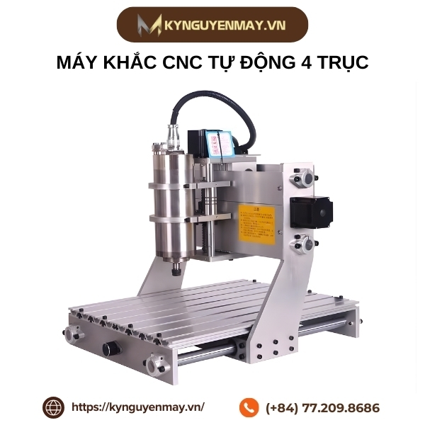 Máy khắc CNC tự động 4 trục là giải pháp gia công toàn diện, cho phép thực hiện các chi tiết phức tạp với độ chính xác cao và tính đồng bộ vượt trội. Nhờ khả năng vận hành linh hoạt, làm việc ổn định và xử lý đa dạng vật liệu, máy giúp nâng cao năng suất sản xuất và tối ưu chi phí lâu dài cho doanh nghiệp. Để được tư vấn cấu hình phù hợp và báo giá nhanh chóng, vui lòng liên hệ Kỷ Nguyên Máy, hotline: 077.209.8686.