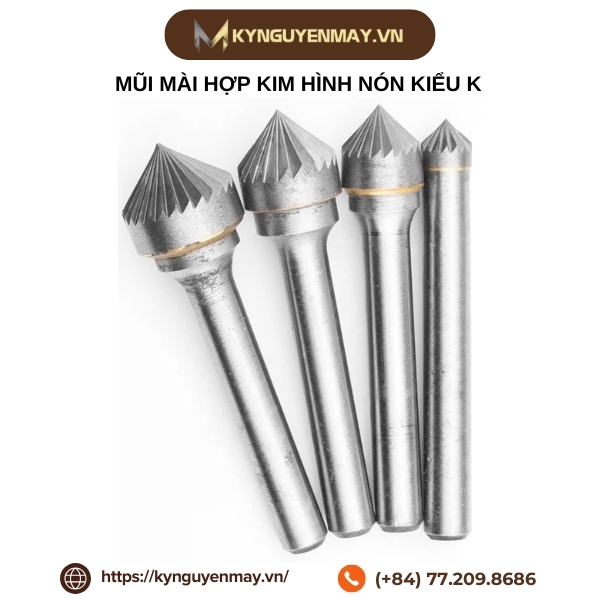 Sở hữu khả năng mài nhẵn hiệu quả và tuổi thọ cao, mũi mài hợp kim hình nón kiểu K giúp nâng cao chất lượng bề mặt chi tiết và giảm thời gian gia công đáng kể. Nếu bạn đang tìm kiếm sản phẩm mũi mài chất lượng, hãy liên hệ Kỷ Nguyên Máy qua hotline: 077.209.8686 để được tư vấn chuyên sâu.