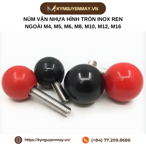 Với thiết kế đơn giản nhưng hiệu quả, núm vặn nhựa hình tròn inox ren ngoài M4, M5, M6, M8, M10, M12, M16 không chỉ giúp tăng tính thẩm mỹ cho thiết bị mà còn đảm bảo thao tác vận hành linh hoạt và an toàn. Sản phẩm phù hợp cho các máy CNC, thiết bị gá kẹp, khuôn mẫu và nhiều ứng dụng khác. Để chọn mua núm vặn giá tốt, hãy liên hệ Kỷ Nguyên Máy qua hotline: 077.209.8686.