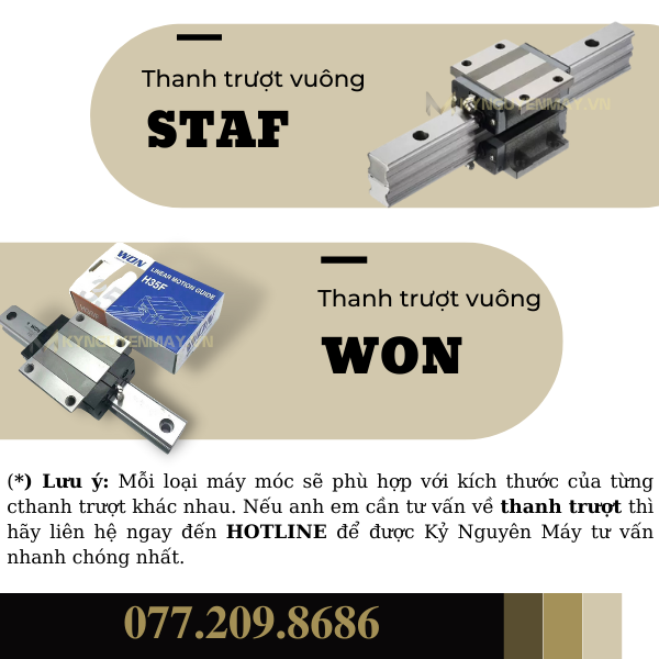 Thanh trượt cơ khí đóng vài trò không thể thiếu trong ngành công nghiệp. Nếu bạn đang tìm mua thanh ray trượt với mức giá hợp lý mà vẫn đảm bảo chất lượng, hãy liên hệ ngay tới Kỷ Nguyên Máy qua HOTLINE 0772098686 để được tư vấn và mua được bộ thanh ray trượt ưng ý nhất.