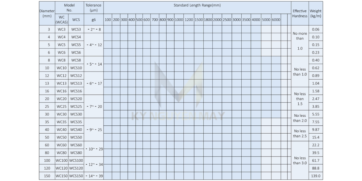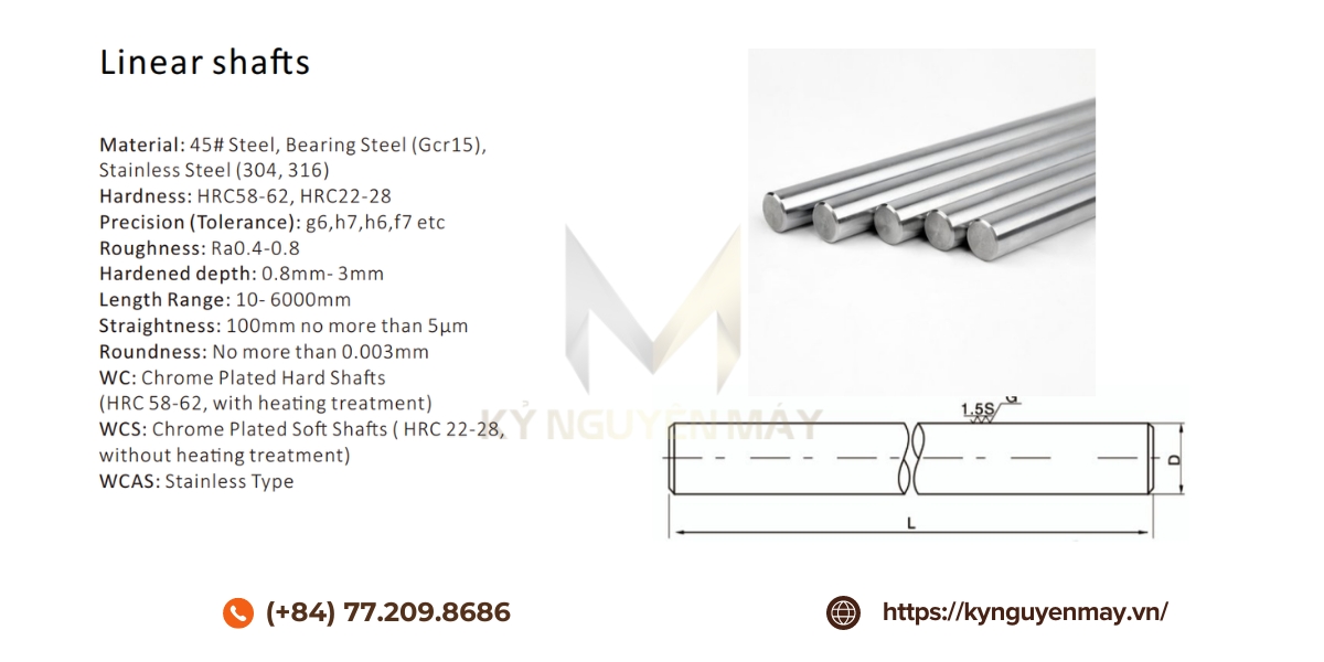 Lưu ý: Chiều dài tối đa của thanh ray trượt tròn các phi từ 6mm đến 60mm là 4m. Tại KYNGUYENMAY.VN có gia công cắt lẻ thanh dẫn hướng tròn theo yêu cầu của Quý khách. Xin vui lòng cung cấp bản vẽ kỹ thuật để cắt đúng kích thước chính xác nhất. Vì tùy vào mỗi kích thước của trục trượt tròn nên sẽ có giá khác nhau, vui lòng gọi HOTLINE: 077.209.8686 để được tư vấn cắt đúng kích thước theo yêu cầu và báo giá. Ngoài ra, quý khách có thể tham khảo thêm các thanh ray trượt khác của chúng tôi.