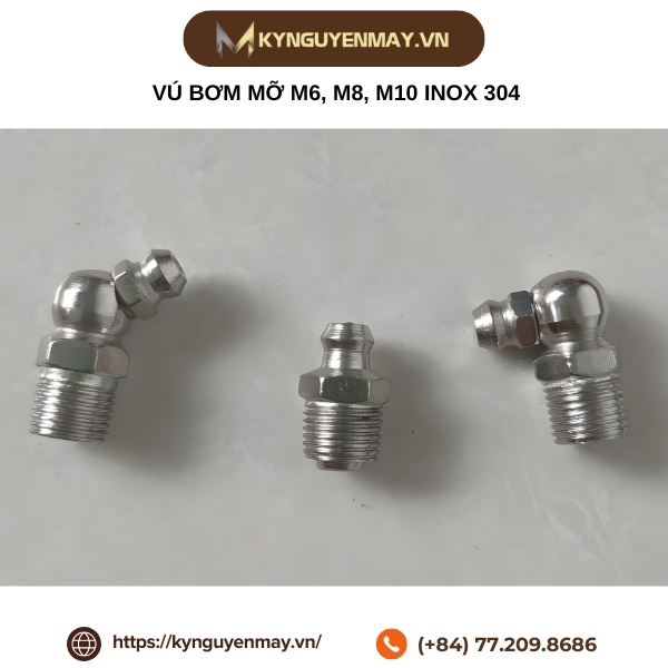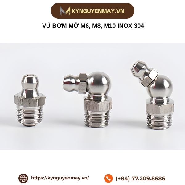 Vú bơm mỡ M6, M8, M10 inox 304 mang đến độ bền cao, chống gỉ sét tuyệt đối và khả năng chịu áp lực tốt trong môi trường làm việc khắc nghiệt. Đây là lựa chọn lý tưởng cho các hệ thống bôi trơn tự động và thiết bị công nghiệp. Liên hệ Kỷ Nguyên Máy qua hotline: 077.209.8686 để được tư vấn và báo giá nhanh nhất.
